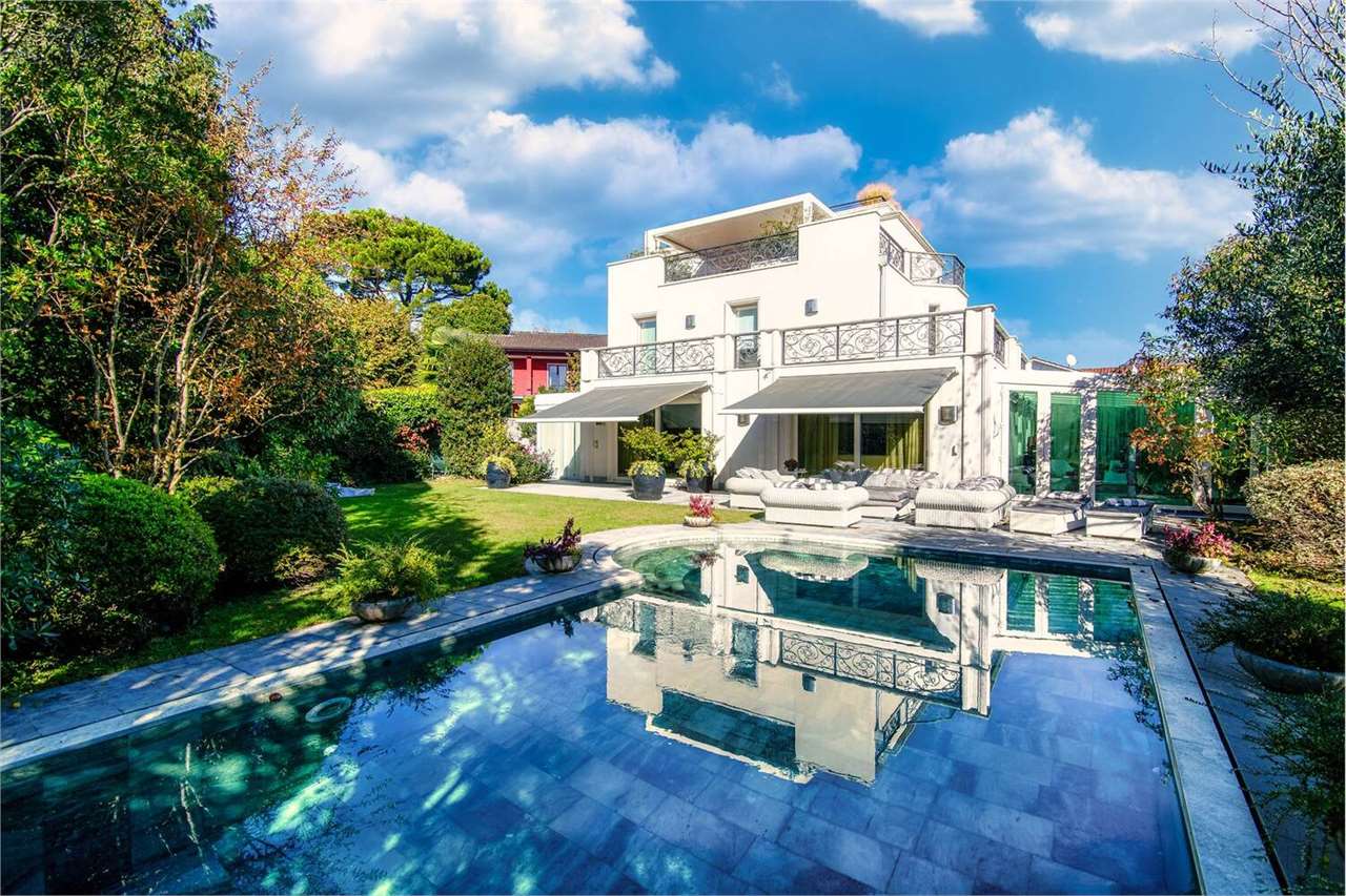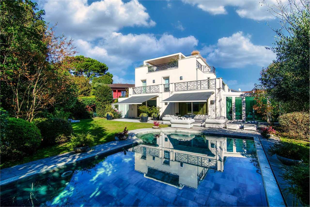Im Außenbereich ist die Villa von einem gepflegten 400 m² großen Garten umgeben, der mit einer Pergola, einem beheizten Außenpool aus Naturstein und fünf Parkplätzen bereichert ist, darunter ein Parkplatz in der Garage, zwei überdachte und zwei unüberdachte Stellplätze.