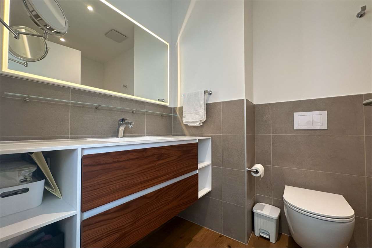 Der Schlafbereich bietet maximale Privatsphäre: ein Hauptschlafzimmer mit eigenem Bad, ein zweites vielseitig nutzbares Zimmer und ein weiteres modernes Bad. Ein privater Waschraum mit Waschmaschine/Trocknersäule sorgt für zusätzlichen Komfort.
