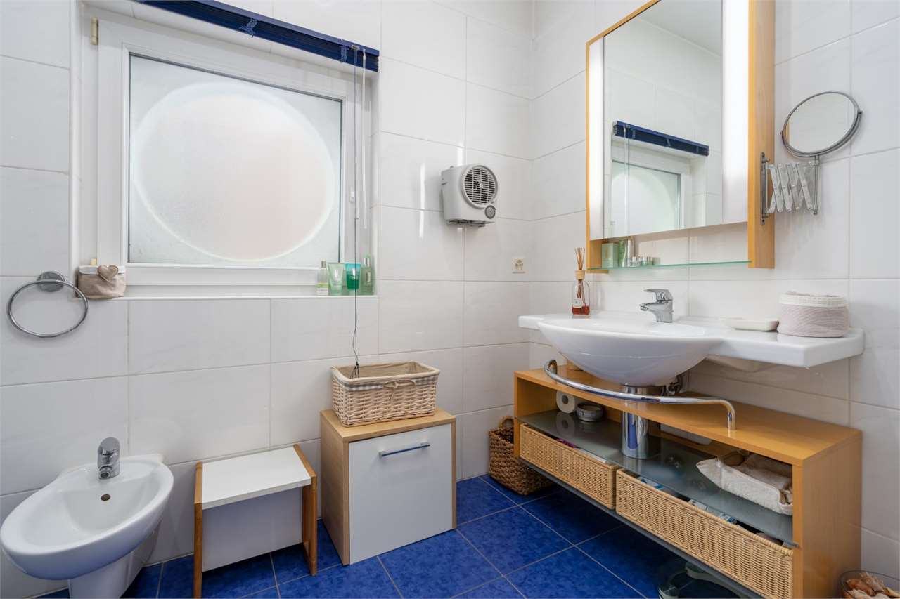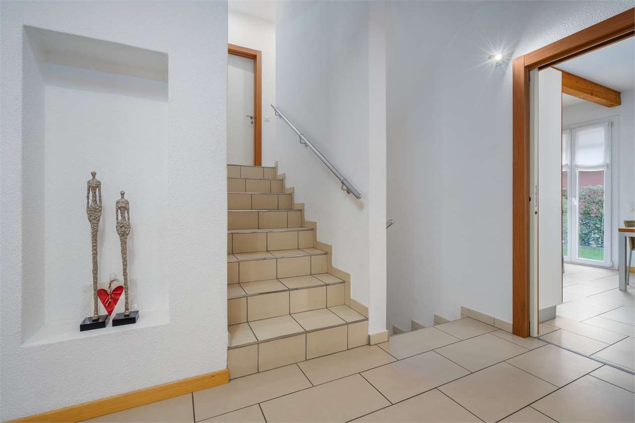 Im Untergeschoss befinden sich stattdessen die technischen Räume, ein Raum mit Fenster, der derzeit als Büro genutzt wird, ein Badezimmer, eine Waschküche und ein weiterer Hobbyraum / Fitnessraum, sowie der Zugang zur Garage (überdacht und geschlossen), die Platz für zwei große Autos bietet.