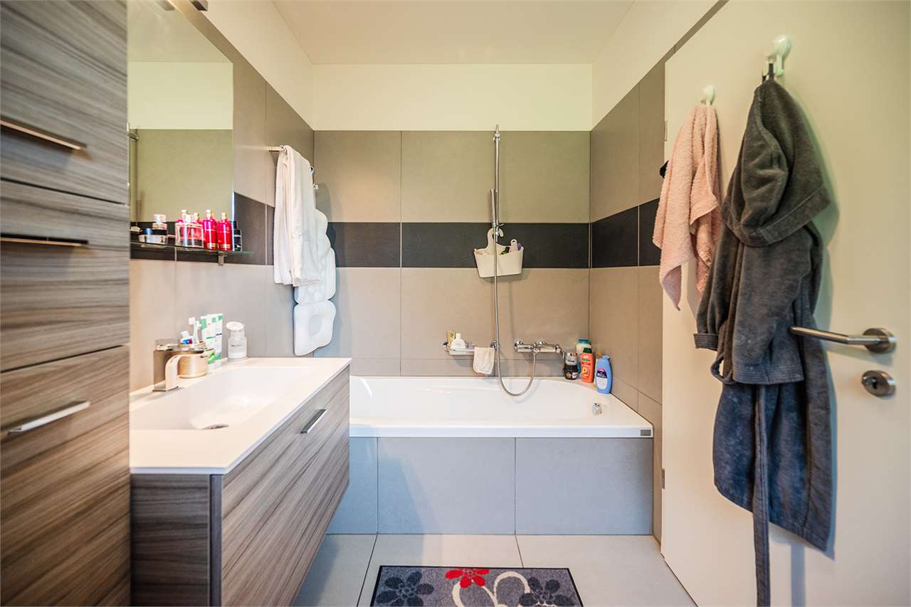 Le finiture di pregio includono finestre in PVC con doppi vetri, tapparelle elettriche, tende da sole e un impianto di irrigazione automatico per il giardino. Il riscaldamento a pavimento garantisce un comfort termico ottimale durante tutto l’anno.