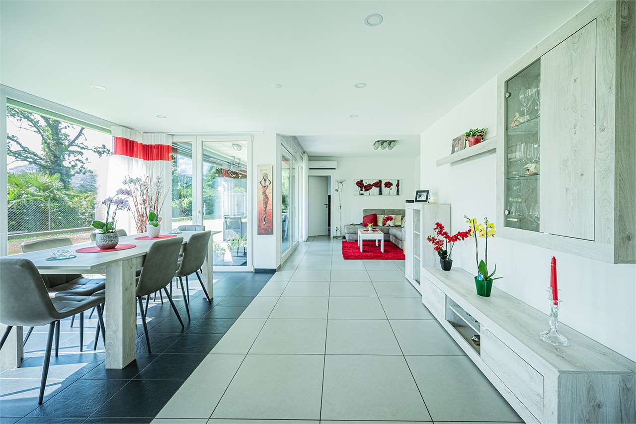 L’immobile, costruito nel 2016, si estende su 128 mq lordi e si distingue per il design moderno, le finiture di qualità e gli spazi ben distribuiti. L’ingresso accoglie con un’atmosfera elegante, conducendo alla zona giorno che comprende un luminoso soggiorno con sala da pranzo. Le ampie vetrate permettono un’abbondante illuminazione naturale e offrono l’accesso al generoso giardino privato di 200 mq e a due terrazzi coperti di 20 mq ciascuno, ideali per trascorrere piacevoli momenti all’aperto. La cucina abitabile, situata accanto alla zona pranzo, è completamente attrezzata con elettrodomestici moderni e progettata per garantire la massima funzionalità.