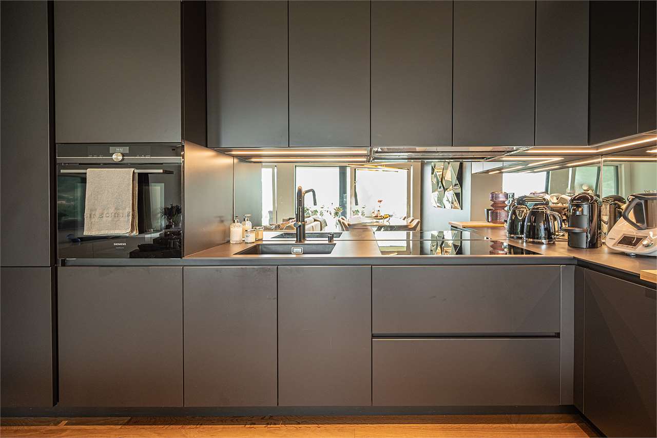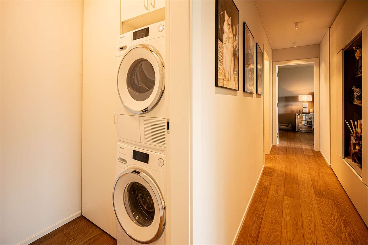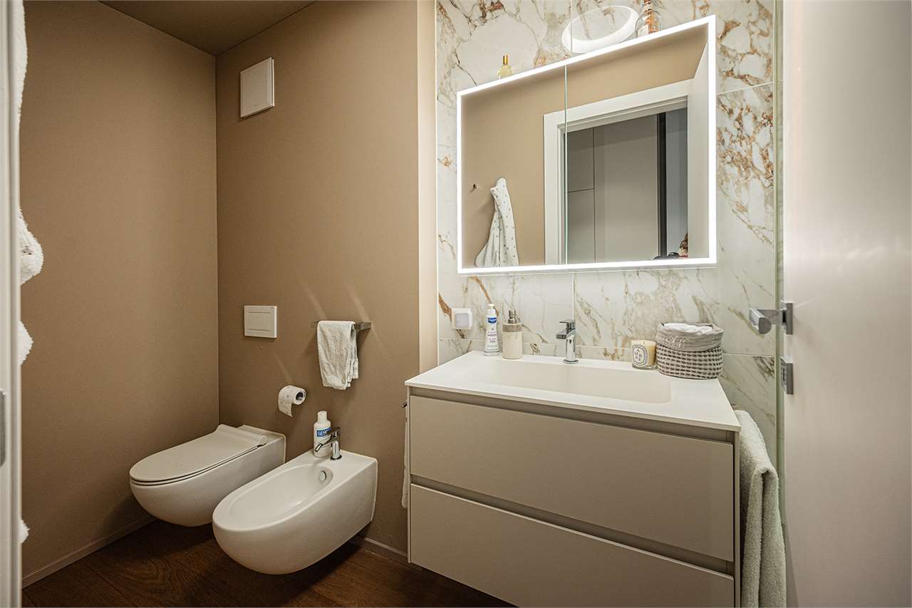 La zona giorno, con cucina a vista e finiture di pregio, è pensata per vivere e condividere. La zona notte si compone di camera padronale con bagno en-suite e cabina armadio, seconda camera, secondo bagno completo con doccia e una comoda lavanderia con scarpiera a muro.