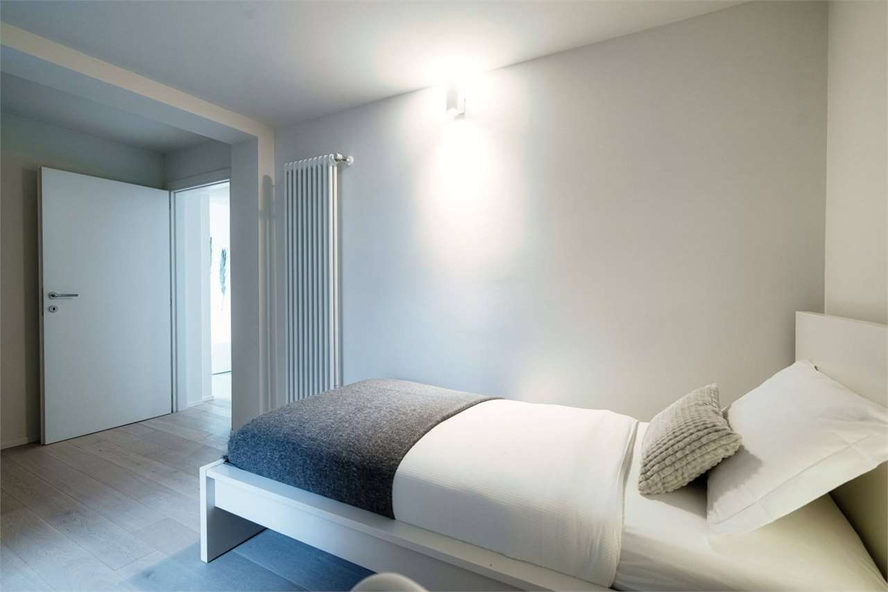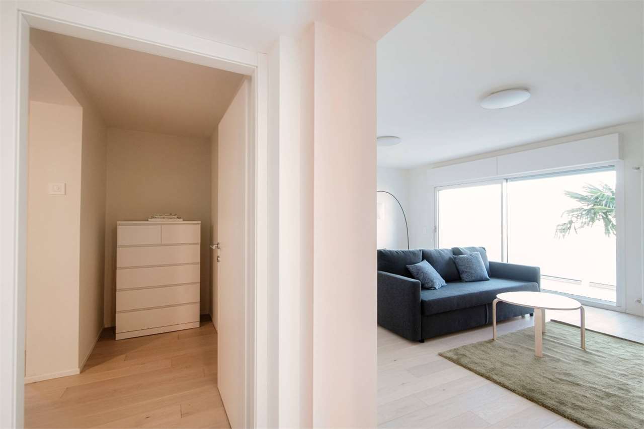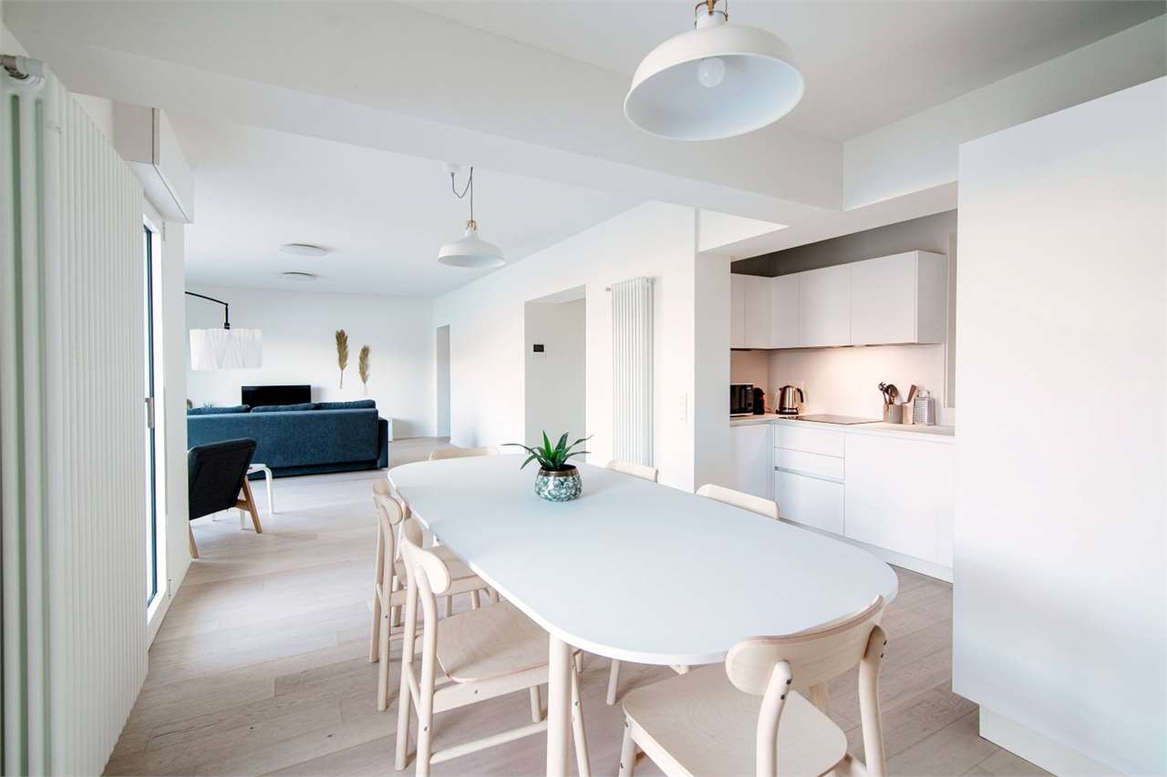 L’appartamento è composto da un ingresso con guardaroba, un’ampia zona giorno/pranzo con accesso diretto alla grande terrazza. La zona notte è composta dalla camera padronale con bagno e cabina armadio in suite e da altre due camere con un secondo bagn