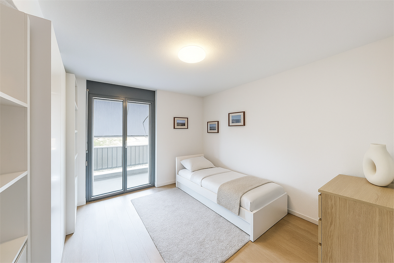 Originariamente nato come un 4,5 locali, l’appartamento offre la possibilità di ricavare una terza camera da letto, rendendolo particolarmente interessante anche per famiglie.