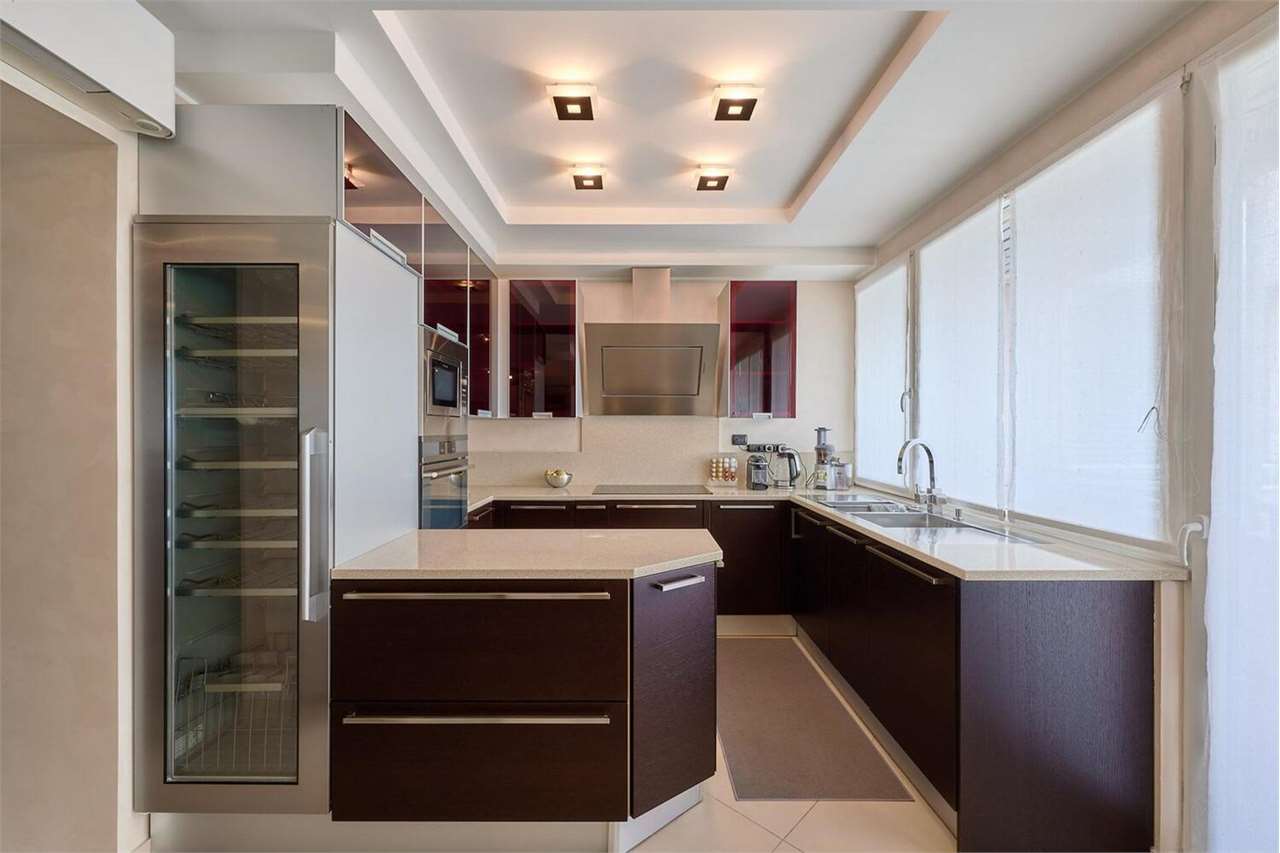 L’appartamento si sviluppa su una superficie di circa 180 mq e vanta una zona giorno ampia e luminosa, con un elegante soggiorno e una spaziosa sala da pranzo, da cui si accede al terrazzo con una vista panoramica mozzafiato a 180 gradi sul lago, sul golfo e sulle montagne circostanti. La cucina, moderna e completamente attrezzata, include un ampio frigorifero per il vino.