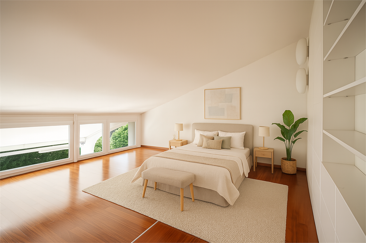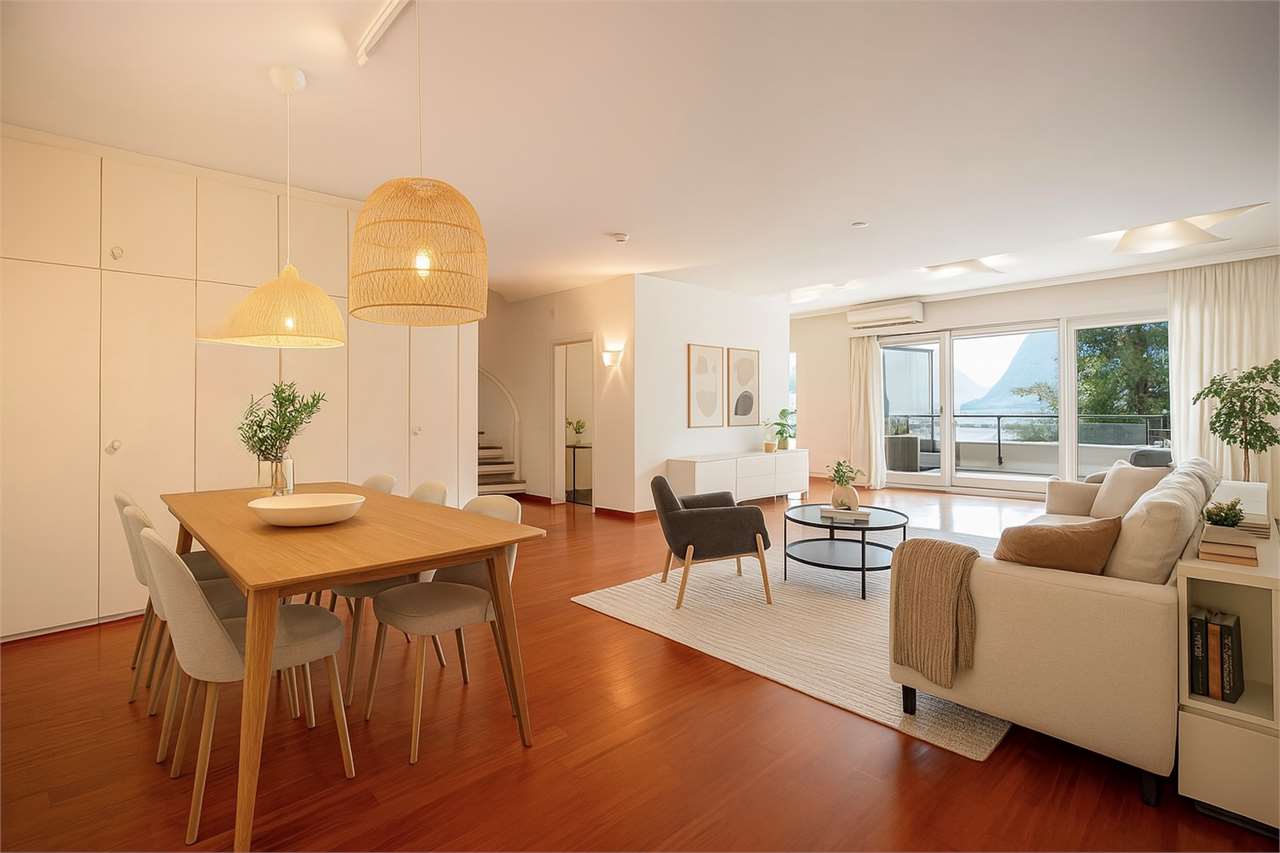 L’attico è ulteriormente valorizzato da una magnifica terrazza coperta, che offre una vista aperta sul lago.