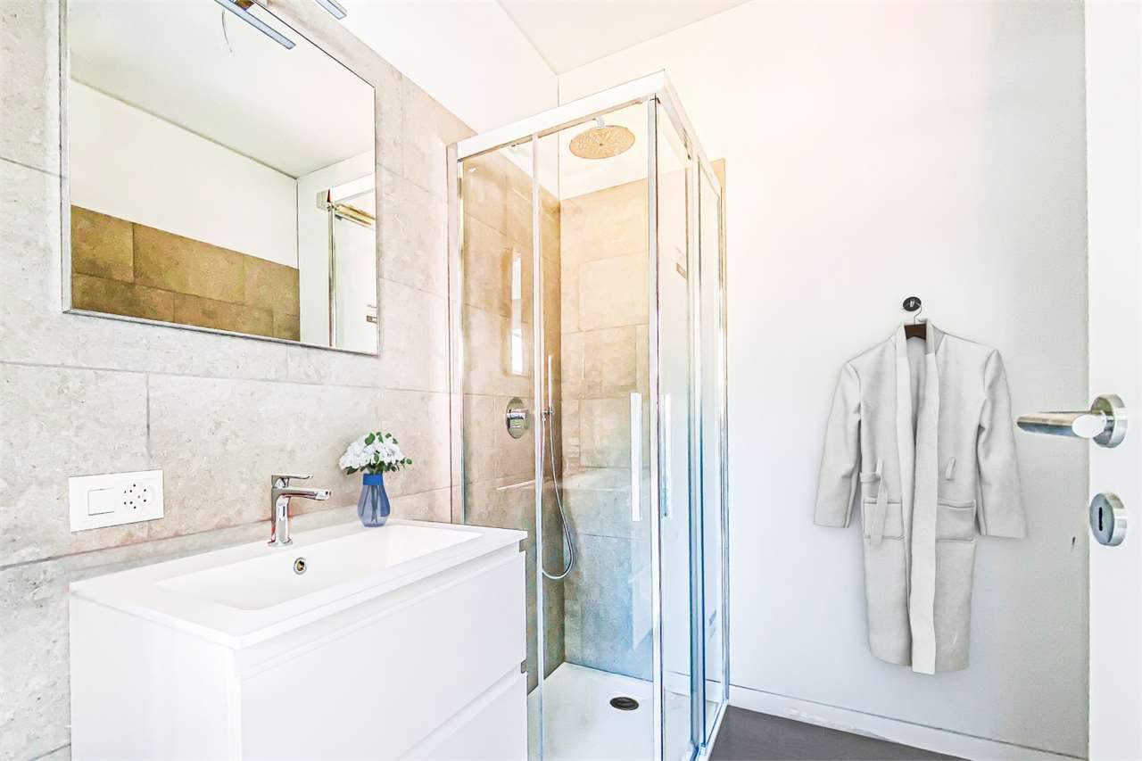 Con una superficie di 65 m², è composto da: ingresso, disimpegno, cucina separata, ampio soggiorno, camera da letto, bagno con doccia e balcone. Recentemente, la cucina e il bagno sono stati oggetto di un’attenta ristrutturazione che aggiunge un notevole valore all’immobile, migliorandone la funzionalità e il comfort.