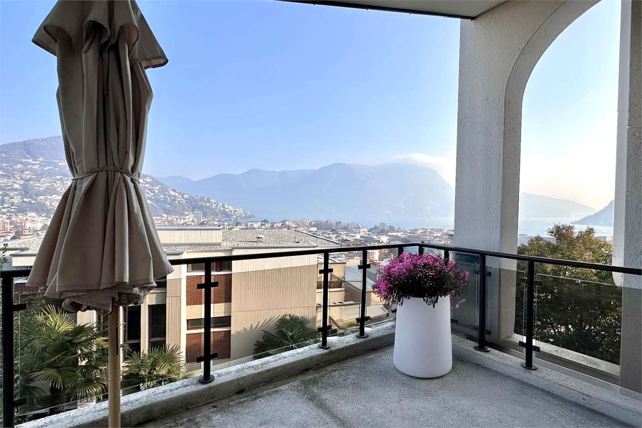 L’immobile dispone di un terrazzo coperto, ideale per rilassarsi o cenare all’aperto, godendo della vista sul lago di Lugano.