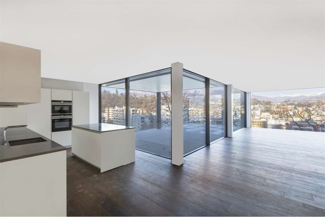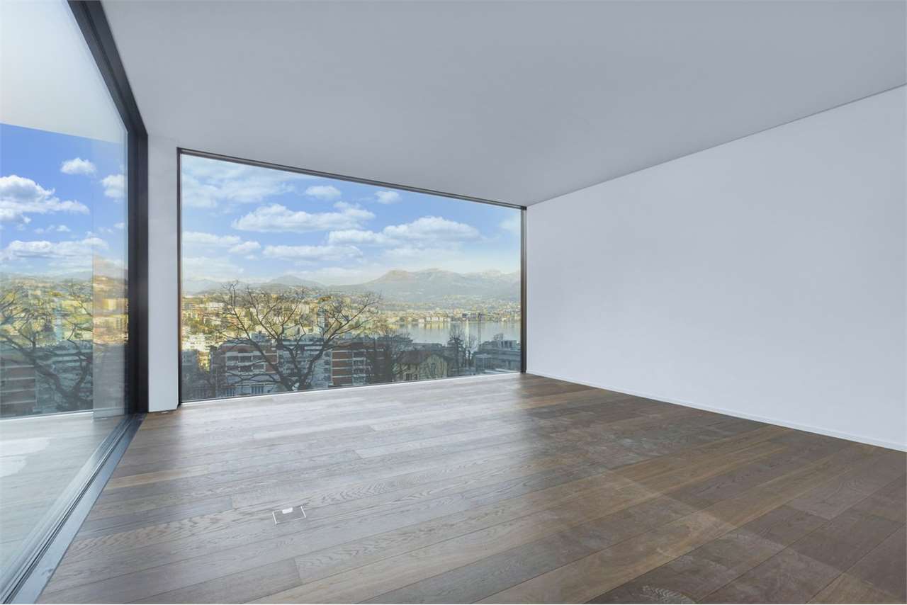 Esclusiva residenza Vista Lago ai piedi del Monte San Salvatore con splendida panoramica sul lago e sulle montagne che ne fanno da cornice.