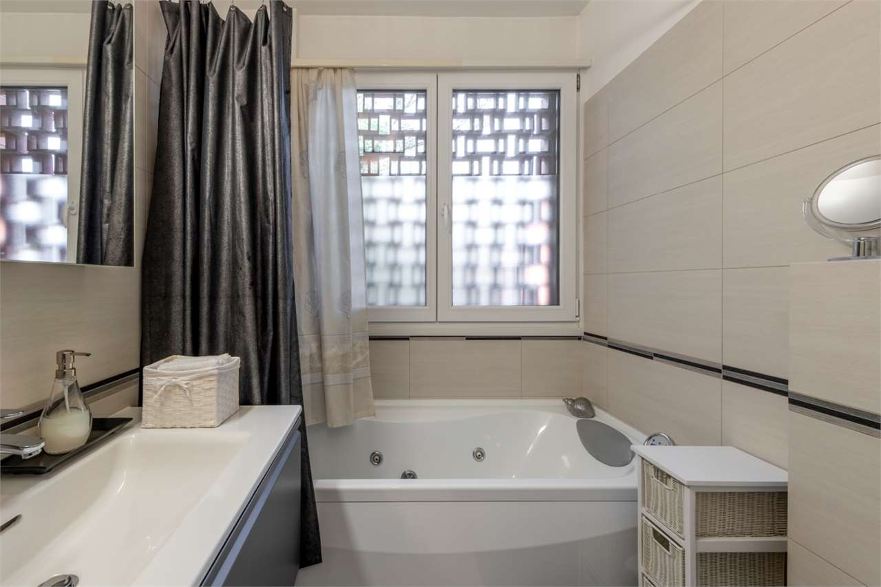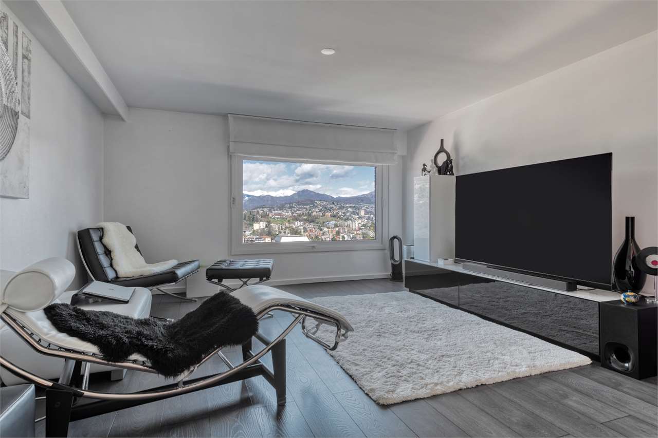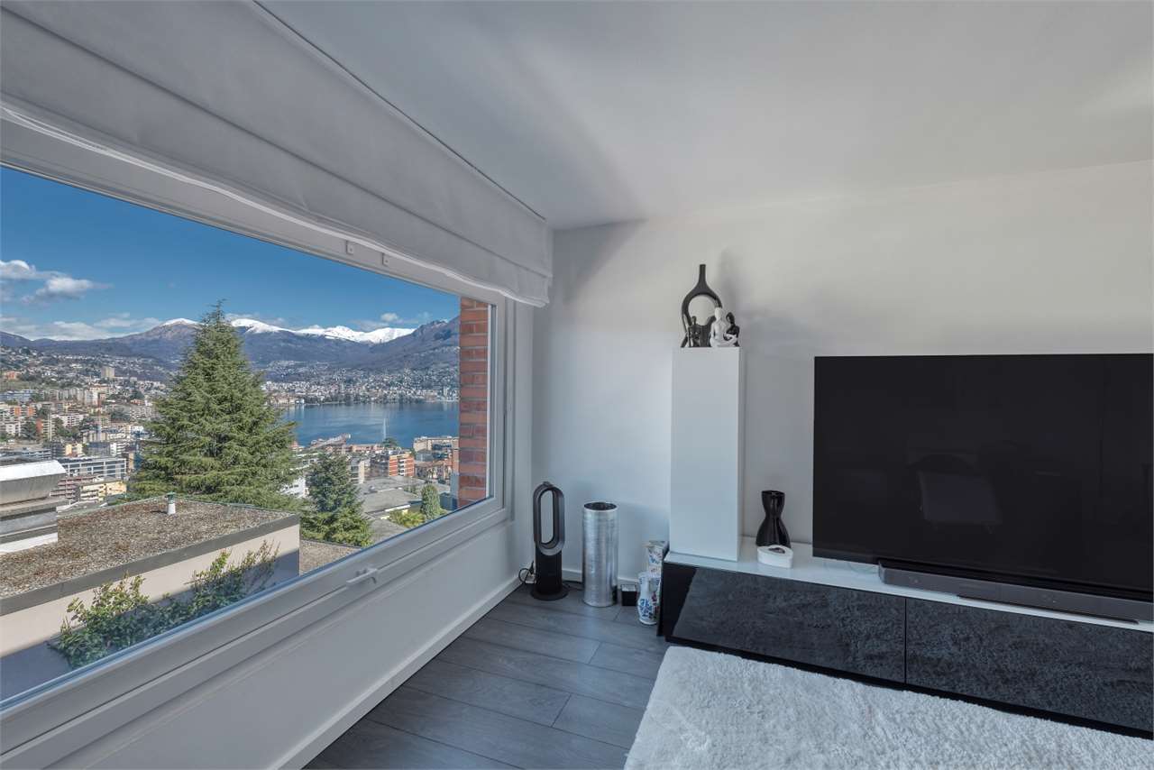 L’appartamento, situato all’ultimo piano e servito da ascensore, gode di una splendida luminosità e di una vista straordinaria sul Lago di Lugano.