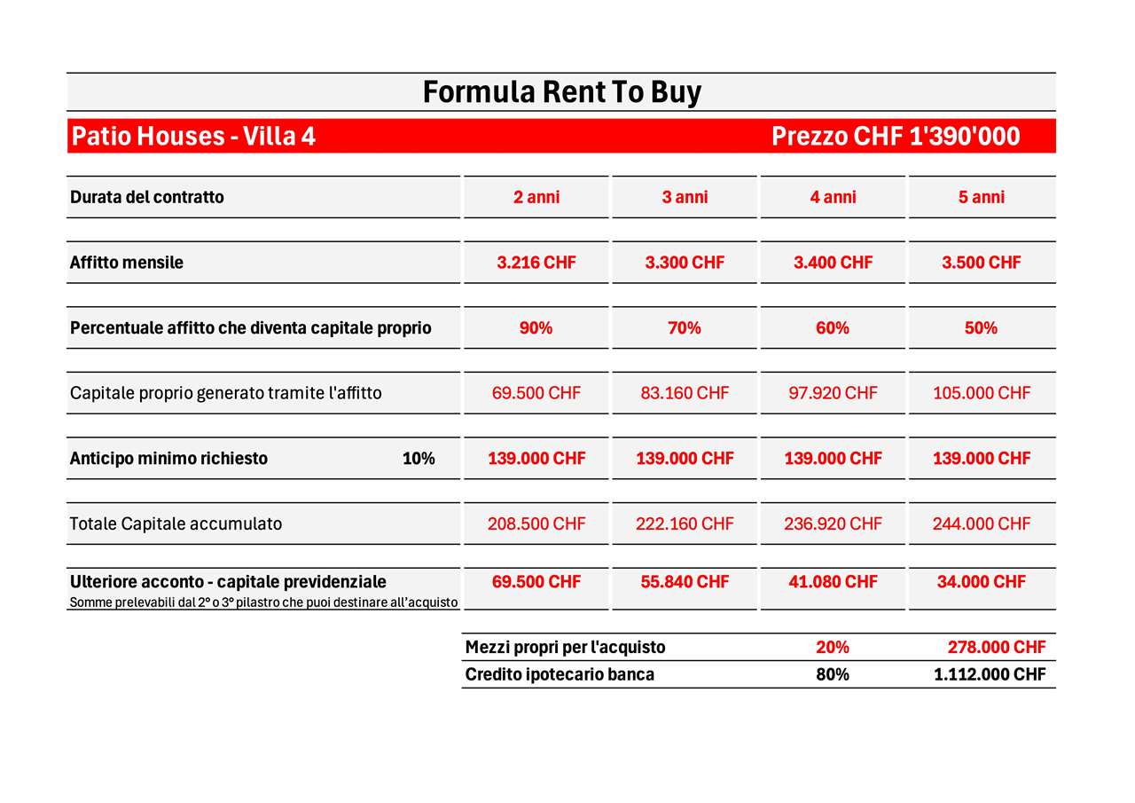 Anticipo minimo richiesto 10% CHF 139’000